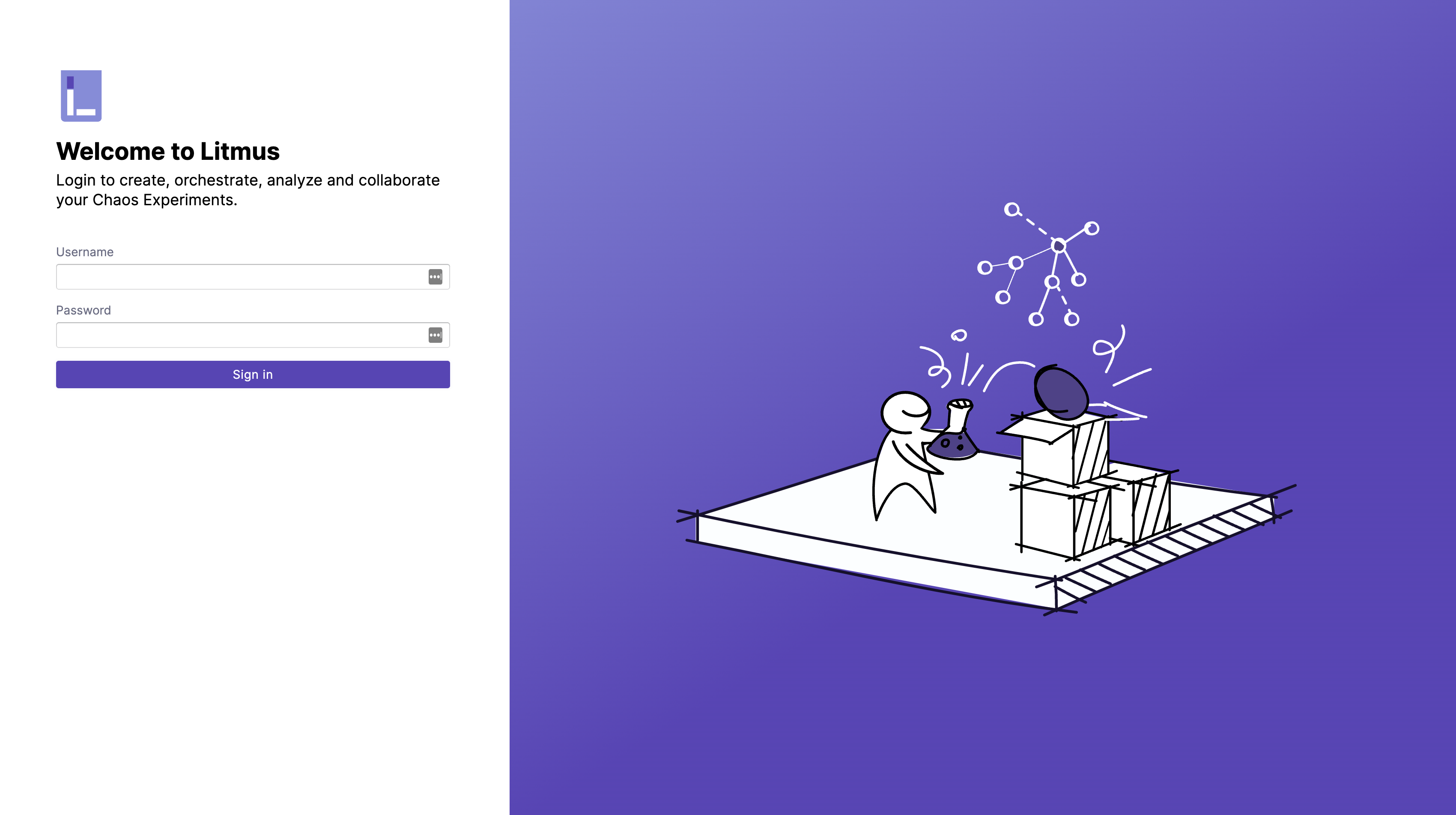 You should be able to see the Login Page of Litmus ChaosCenter. The default credentials are